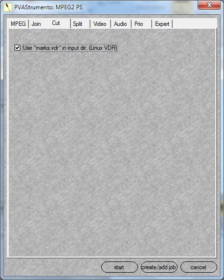 Wenn die Sendung bereits auf dem VDR vollständig geschnitten wurde, kann Sie diesen Punkt abgehakt bleiben. Hat man jedoch nur die Schnittmarken gesetzt, kann PVAStrumento die Video-Datei auch Datei komplett schneiden, indem die Schnittmarkendatei des VDR (marks.vdr) verwendet wird. Ich halte das für den empfehlenswerten Weg.