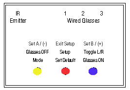 pressing of the red button ('Set') to enter glasses setup (see below)