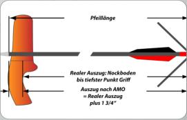 Am Pfeil lang, von der Sehne bis zum vorderen Ende des
