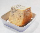 Dieser Weichkäse stammt aus der Normandie. Er ist von weißen Schimmel überzogen. |
