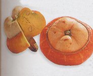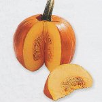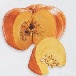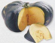 Eine ausgesprochen dekorative Variante der Kürbisse, denn der Blütenansatz bildet eine Art Krone, die meistens von anderer Farbe ist als der„Hauptkürbis". Leider ist der skurrile Exote ganz voller Kerne und hat eineäußerst geringe Fleischausbeute. |