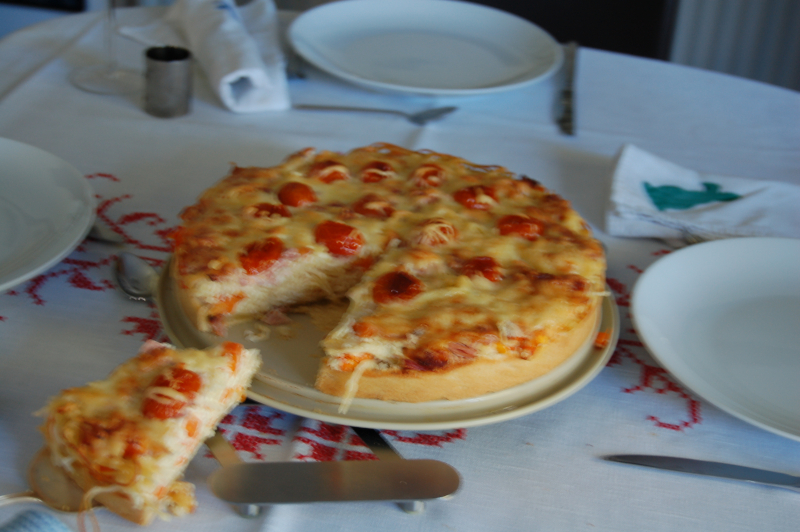 - Teig auf einer leicht bemehlten Arbeitsfläche rund ausrollen
