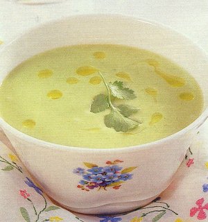Die Brühe erhitzen, die Erbsen hinzufügen, aufkochen und knapp unter dem Siedepunkt 3 bis 5 Minuten ziehen lassen. Sahne zufügen und mit dem Stabmixer fein pürieren.