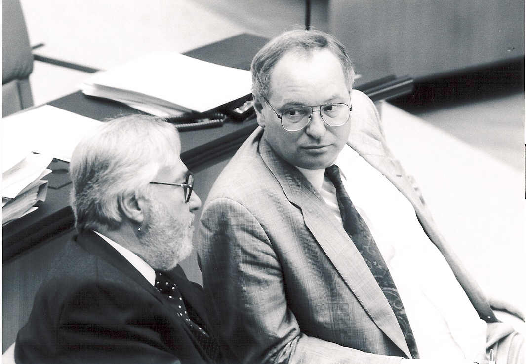 links: Im Plenarsaal des Bundestages mit Vizepräsident Cronenberg; left: in the Plenary with Vice-President Cronenberg