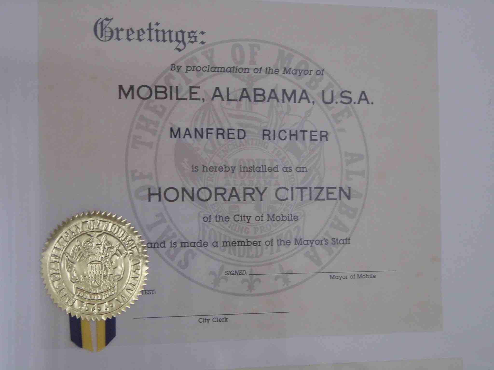 Ehrenbürger von New Orleans, Louisiana und Mobile, Alabama