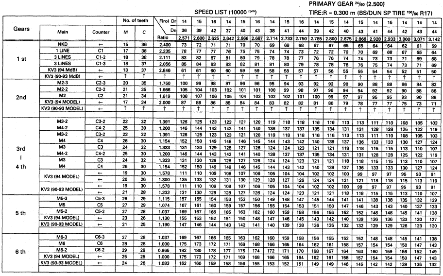 in der Liste findet man Getriebeübersetzung und die Möglichkeiten die zu verändern bei Änderung der Sekundärübersetzung ist die Kettenlänge zu beachten