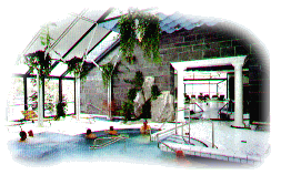 Außenwarmbecken (28-30 Grad), Wellnessbecken mit Massagedüsen und Geysir (31 Grad), Brodelbecken 29 Grad.